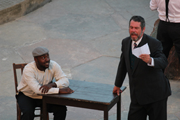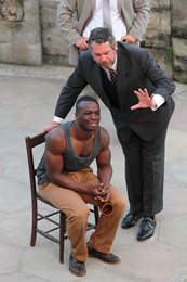 Ayton as Jim Conley with his chain gang, Colin Warnock as the Governor,